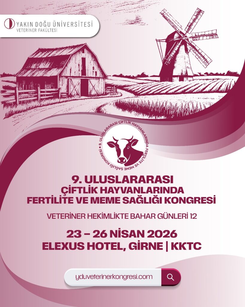 9. Uluslararası Çiftlik Hayvanlarında Fertilite ve Meme Sağlığı Konferansı 23–26 Nisan 2026 tarihlerinde Yakın Doğu Üniversitesi Veteriner Hekimliği Fakültesi öncülüğünde gerçekleştiriliyor.