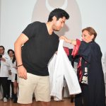 Öğrenciler beyaz önlüklerini giymeden önce, Yakın Doğu Üniversitesi Dans Okulu misafirler için kısa bir dans gösterisi sundu. Öğrenciler daha sonra hocalarının ellerinden beyaz önlüklerini giyerek ailelerine büyük bir gurur yaşattı. Seramoninin ardından tüm öğrenciler, Yakın Doğu Üniversitesi Veteriner Hekimliği Fakültesi, Zootekni ve Hayvan Besleme Bölüm ve Anabilim Dalı Başkanı Prof. Dr. Dilek Arsoy eşliğinde meslek yeminlerini okuyarak mesleğe ilk adımlarını attı.